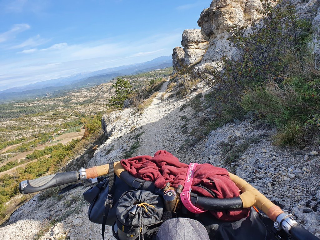 Une aventure vélo n’est pas une vraie aventure vélo sans pneu crevé. Cette fois ci j’ai crevé dans la montée au col de la mort d’Imbert un peu avant midi. Il faut juste prendre le temps de répéter les gestes appris, de récupérer la chambre à air de secours (la réparation de celle crevée se