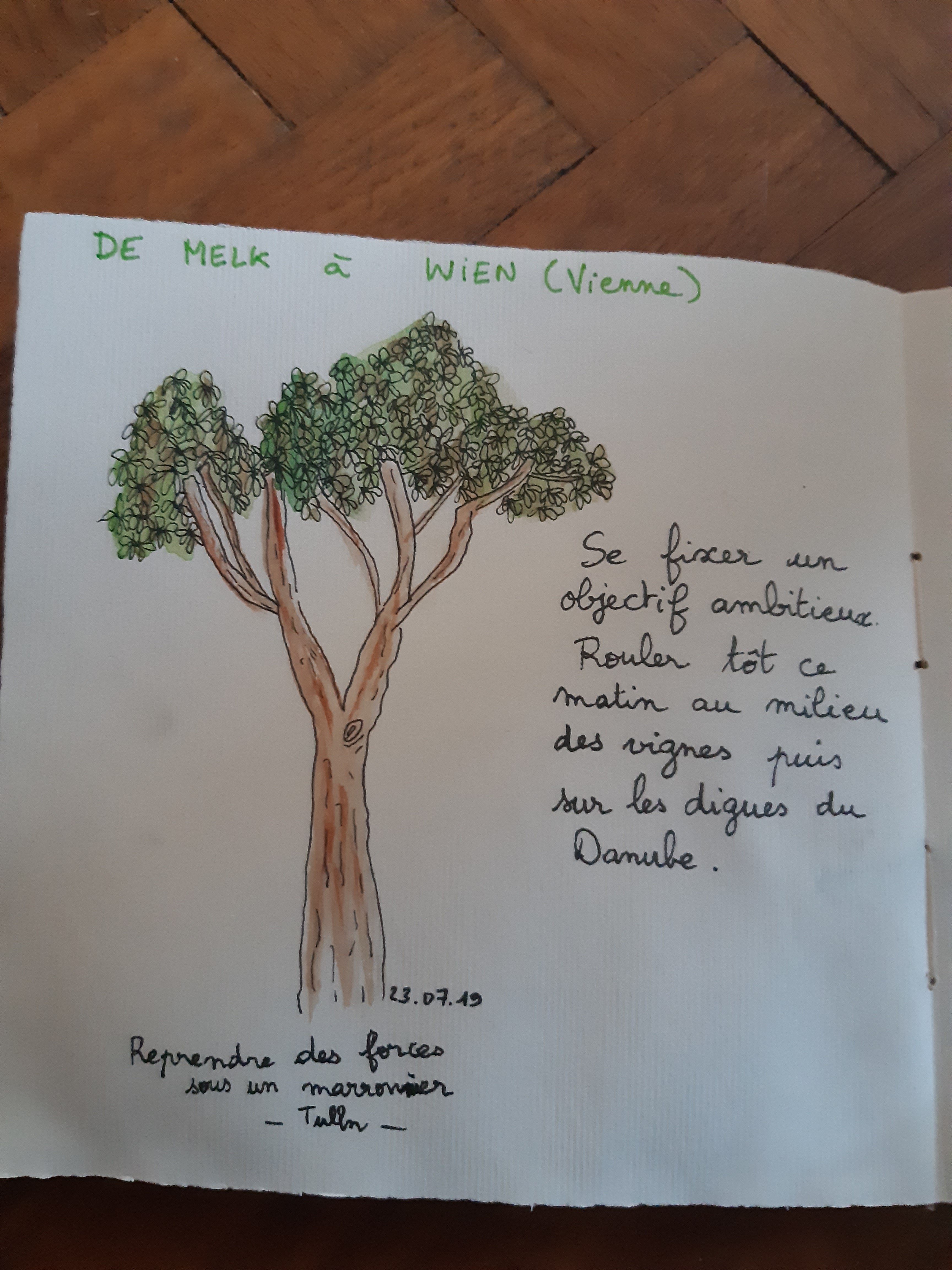 Grosse etape, alors petit dessin. Je n’ai pas pris le temps de dessiner le paysage sublime dans les vignes de ce matin mais j’en ai pris plein les yeux. Ce soir et pour deux nuits repos bien mérité a Vienne chez des hôtes grace au réseau warmshowers.