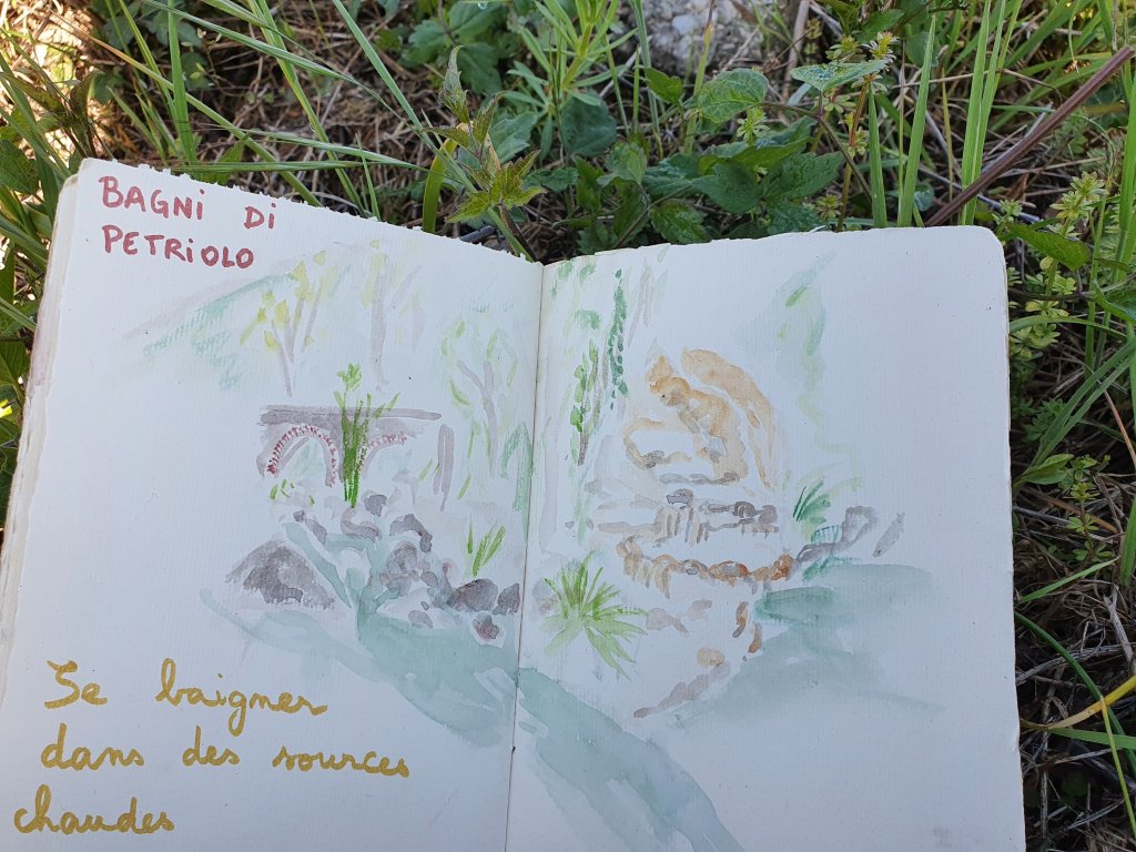 On a pris le train jusqu’à Buonconvento puis une belle boucle pour aller se ressourcer dans les bains naturels à Petriolo.