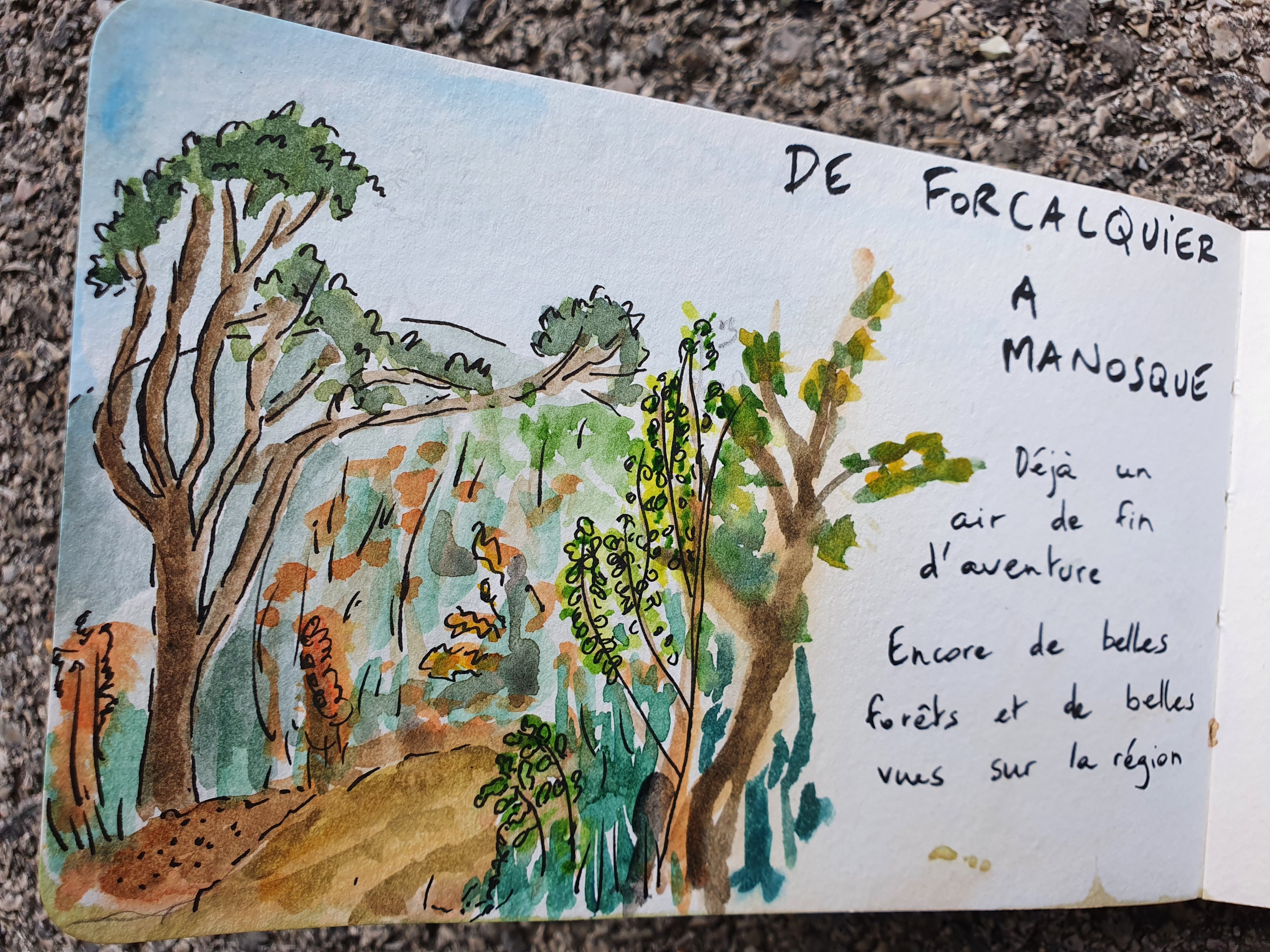 Une aventure vélo n’est pas une vraie aventure vélo sans pneu crevé. Cette fois ci j’ai crevé dans la montée au col de la mort d’Imbert un peu avant midi. Il faut juste prendre le temps de répéter les gestes appris, de récupérer la chambre à air de secours (la réparation de celle crevée se fera plus tard au calme) et surtout d’inspecter patiemment le pneu jusqu’à trouver l’épine fautive! La fin du trajet se fait donc avec une petite prière à la déesse des roues crevées mais j’arrive sans problème avec 1h d’avance à la gare de manosque.